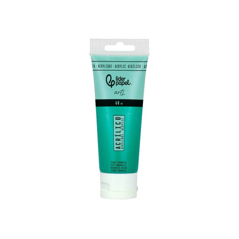 La pintura acrílica Liderpapel en tubo de plástico de 60 ml, en color verde turquesa, es una opción ideal para quienes buscan un producto versátil y de rápida aplicación. Gracias a su base de agua, se seca rápidamente, permitiendo trabajar con múltiples capas en poco tiempo y logrando acabados duraderos y resistentes al agua.