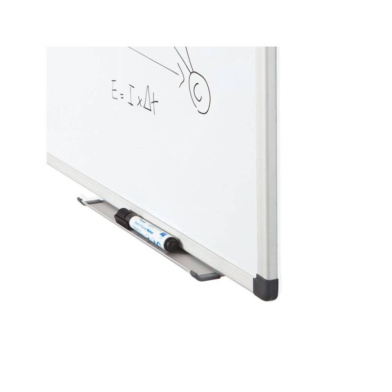 Pizarra lacada con marco de aluminio anodizado y cantoneras embellecedorasde pvc. Superficie apta para la escritura con rotuladores de borrado en s eco e imanes. Incluye una bandeja para rotuladores y sus accesorios para la instalación en la pared. Recomendada para un uso frecuente. Más modelos disponibles |