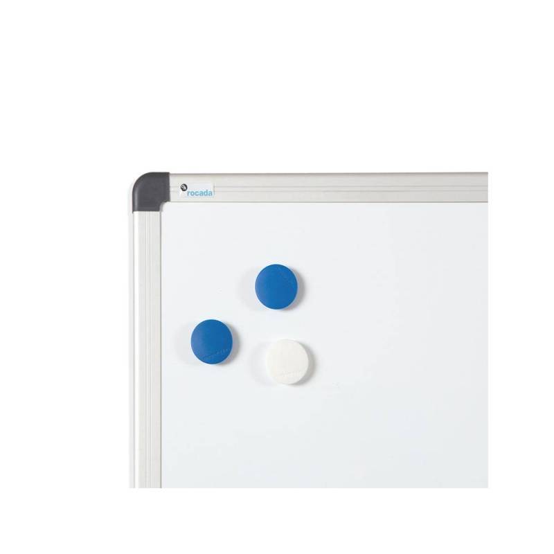 Pizarra blanca rocada lacada magnetica marco aluminio con cantoneras 60x90 cm. |
