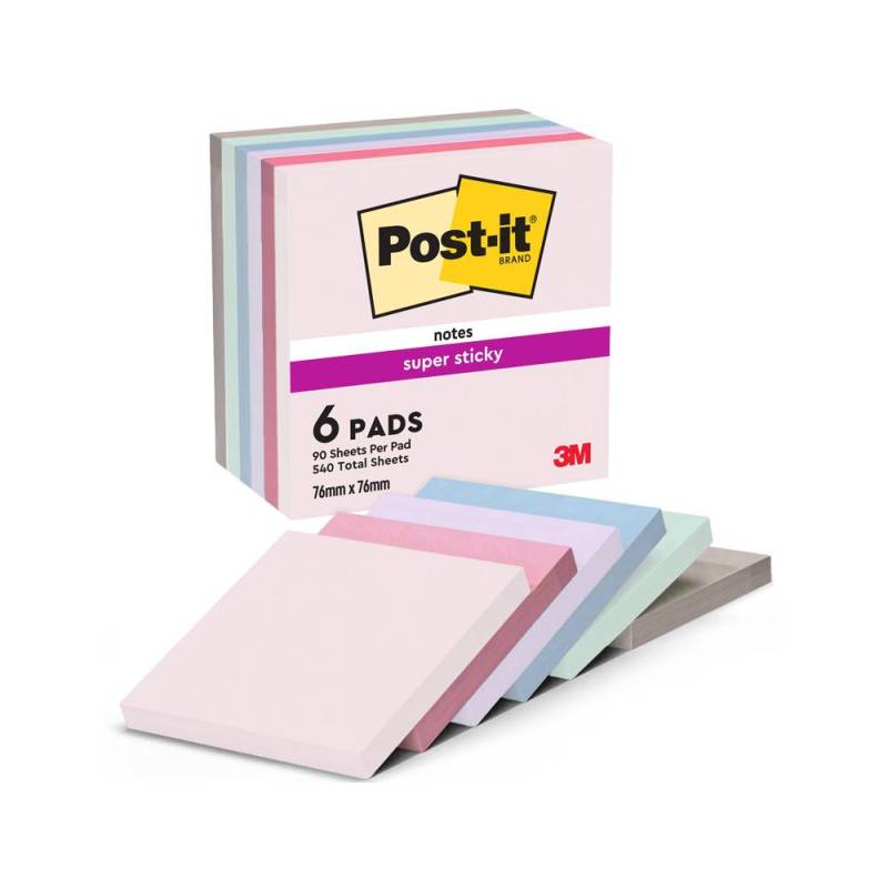 BLOC DE NOTAS ADHESIVAS QUITA Y PON MARCA POST IT SUPER STICKY SOULFUL 100% PEFC 76X76 MM PACK DE 6 BLOCS COLORES