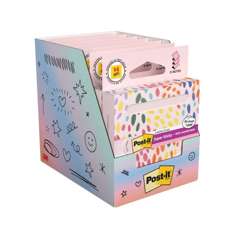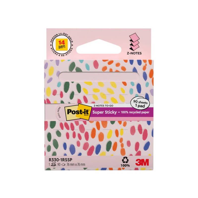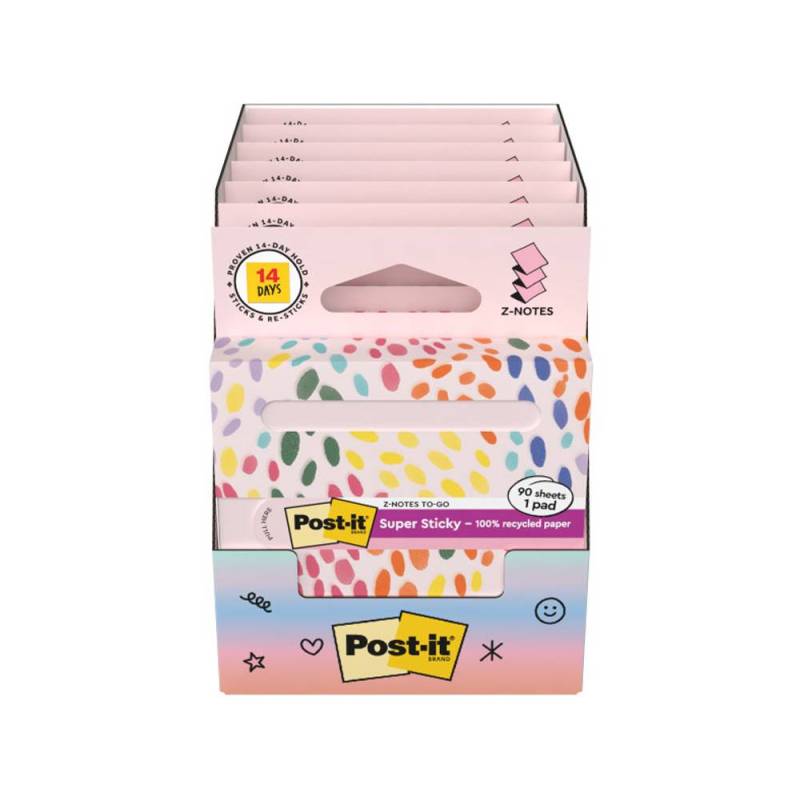 Las notas adhesivas Post-it® Z-Notas Super Sticky son la solución práctica y ecológica para organizar tus ideas y recordatorios. Con un adhesivo reforzado que asegura una fijación firme sobre diversas superficies, estas notas se destacan por su facilidad de uso gracias a un dispensador portátil que permite extraer hojas con una sola mano. Fabricadas con papel 100% reciclado y certificadas PEFC, combinan funcionalidad con un compromiso ambiental.