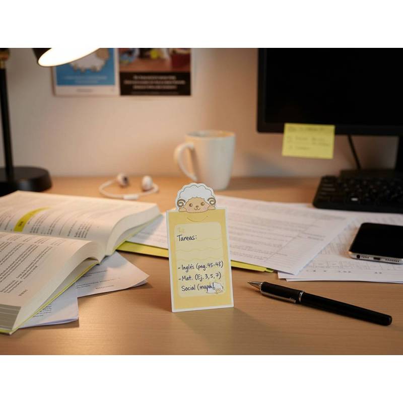 Haz más dinámicas y creativas tus anotaciones diarias con estas notas adhesivas de tamaño práctico, diseñadas especialmente para aportar un toque divertido y funcional a tus recordatorios y mensajes. Con un formato compacto de 85 x 164 mm, cada hoja incluye un diseño exclusivo en la parte trasera que complementa su utilidad con un detalle decorativo único.