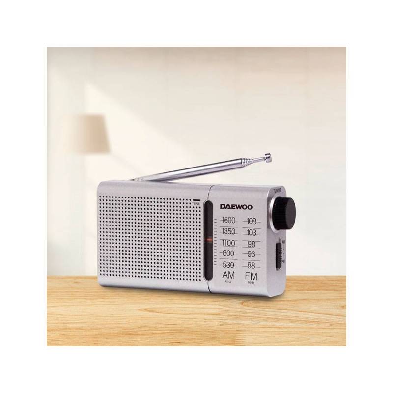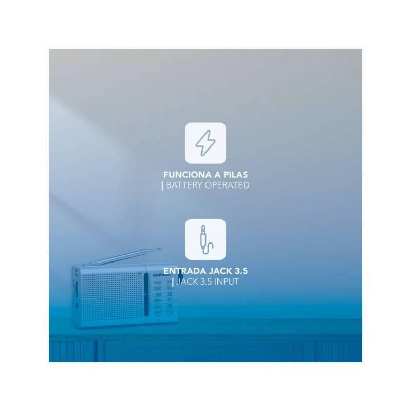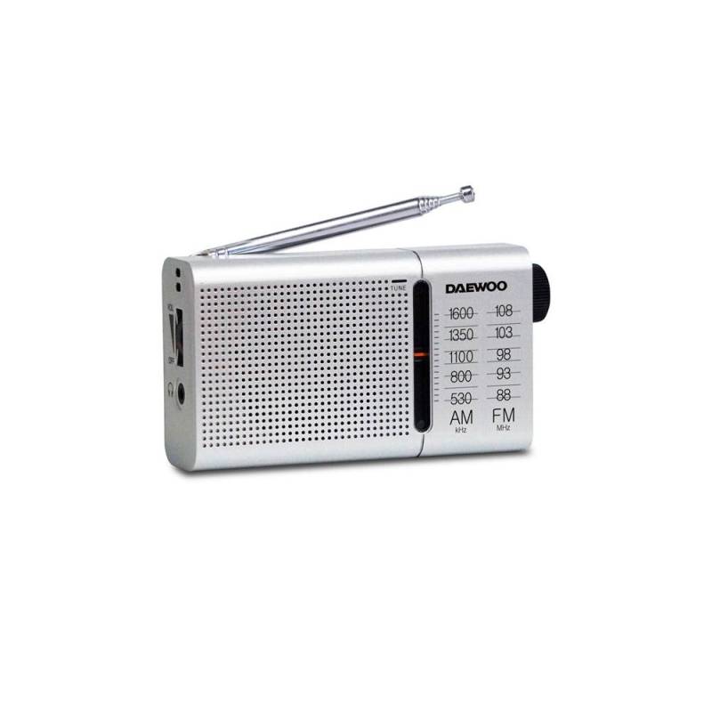 Este receptor analógico Daewoo DW1037 es una radio portátil compacta y funcional, diseñada para sintonizar emisoras en las bandas AM (530-1600 kHz) y FM (88-108 MHz). Su antena telescópica garantiza una mejor captación de señal, mientras que el altavoz frontal ofrece una salida de audio clara. Incluye auriculares básicos con conector jack de 3.5 mm para una escucha privada, ideal para estudiantes y usuarios que requieren una experiencia auditiva sin interrupciones.