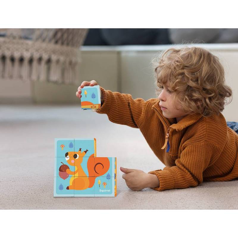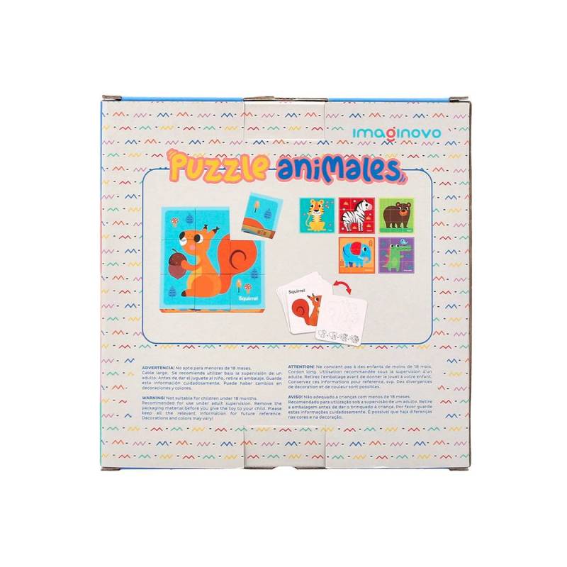 PUZLE INFANTIL MARCA IMAGINOVO MADERA CUBOS DE ANIMALES +24 MESES 15 PIEZAS INCLUYE 12 PATRONES 22X22X6,4CM