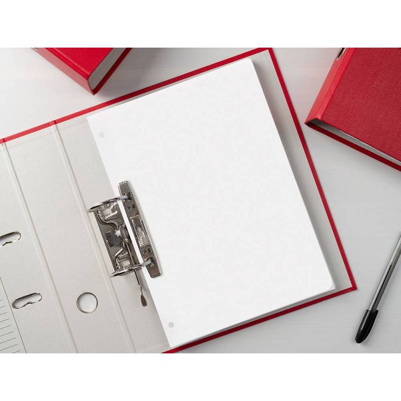 Recambio de anillas Liderpapel 100 g/m2. 100 hojas. Paquete de 100 hojas. Con margen. Papel extrafuerte. Din A5. 6 taladros. Multiuso para carpetas de 2 y 4 anillas. Recambio liso