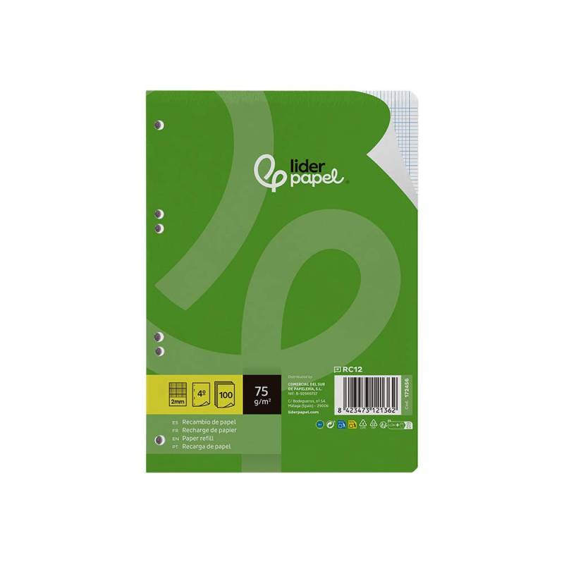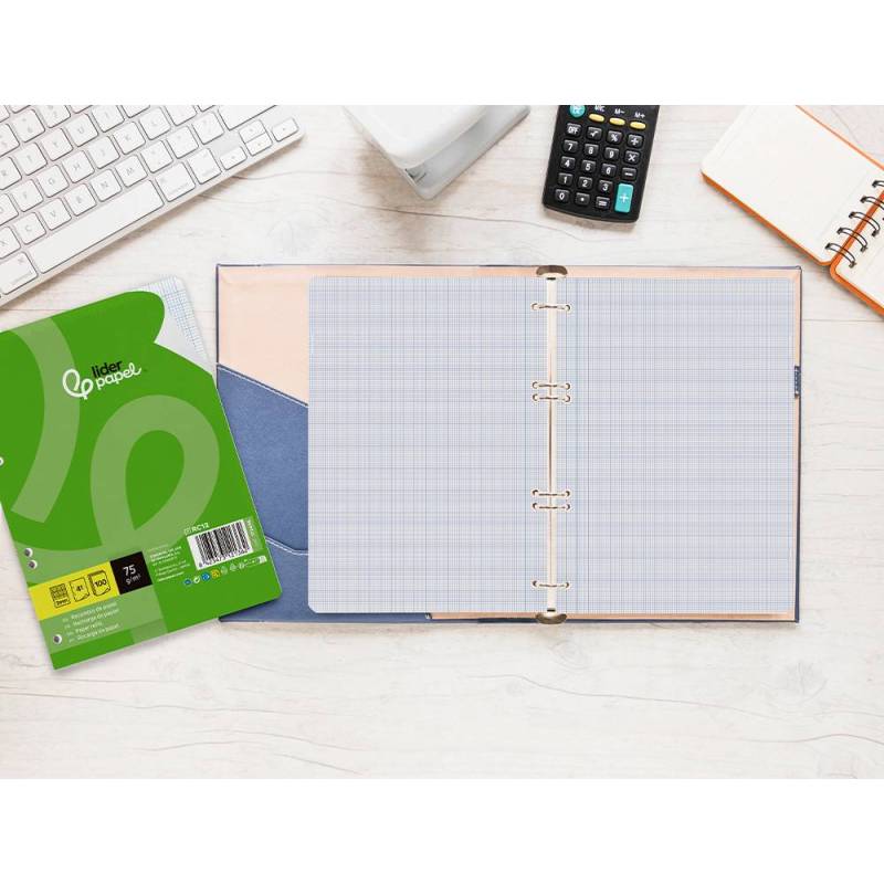 RECAMBIO MARCA LIDERPAPEL DIN A5 100 HOJAS 75 GR MILIMETRADO SIN MARGEN 6 TALADROS