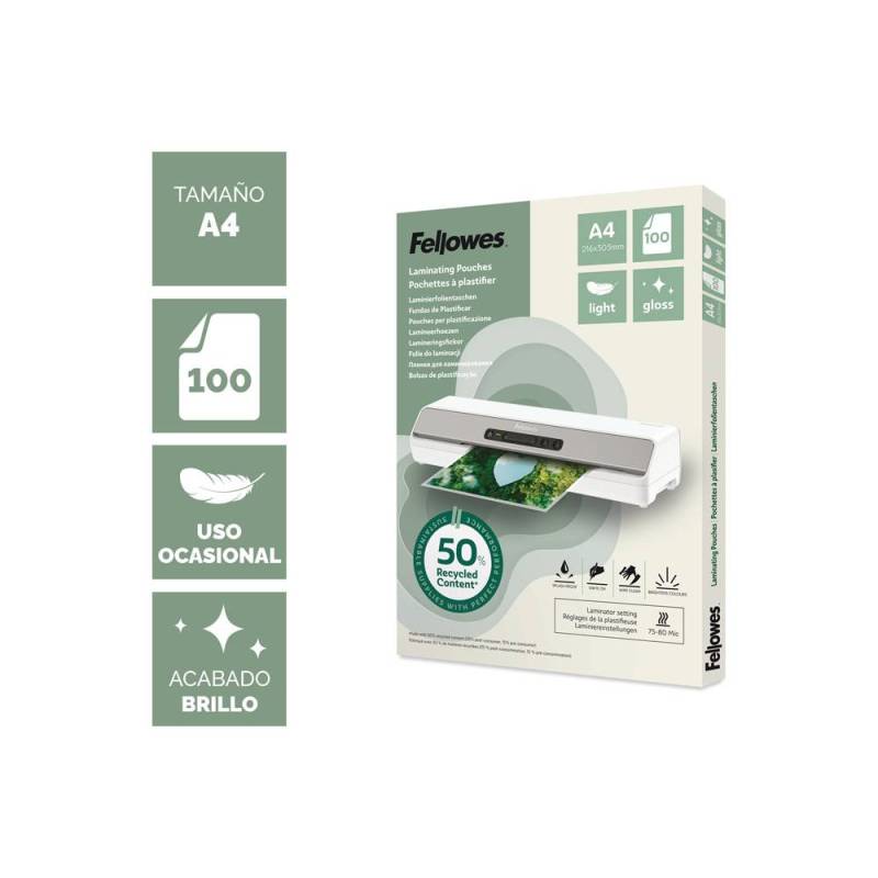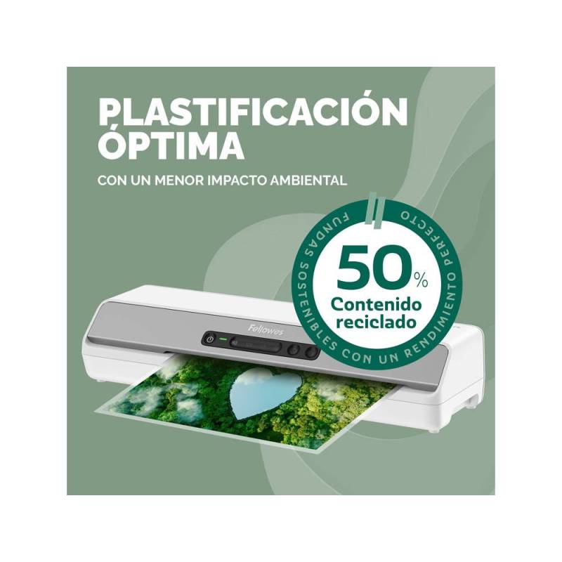 Las bolsas de plastificar Fellowes recicladas con acabado brillo en formato DIN A4 y grosor de 80 micras ofrecen una solución eficiente y ecológica para proteger y realzar documentos importantes. Fabricadas con un 50% de contenido reciclado, estas fundas combinan sostenibilidad con un alto rendimiento, garantizando una presentación profesional y una protección duradera.