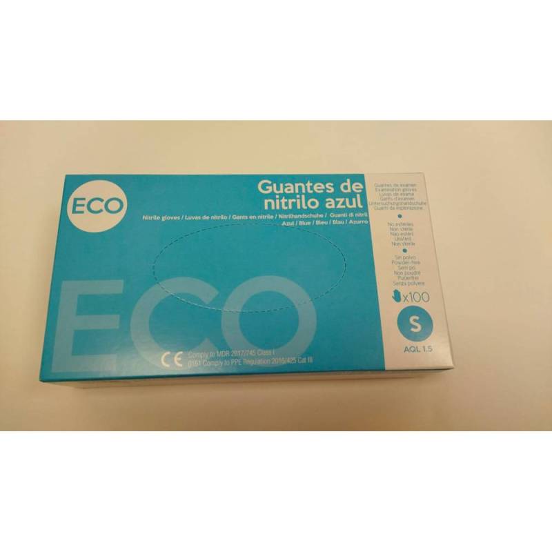 GUANTES DE NITRILO MARCA SANYC ECO DESECHABLE NO EMPOLVADO TALLA S COLOR AZUL CAJA DE 100 UNIDADES