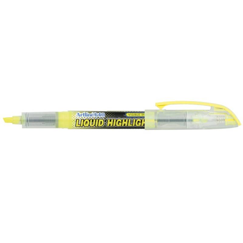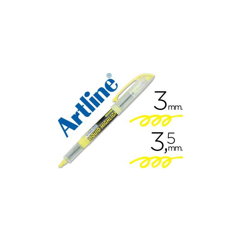 Rotulador Artline EK-640. Color amarillo. Rotulador fluorescente con visor de tinta. Punta biselada de fibra de poliester. Tinta líquida resistente con base de agua. Trazo entre 3 y 3,5 mm.