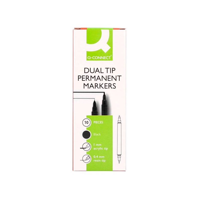 ROTULADOR Q-CONNECT MARCADOR PERMANENTE DOBLE PUNTA NEGRO 4 MM Y 1 MM