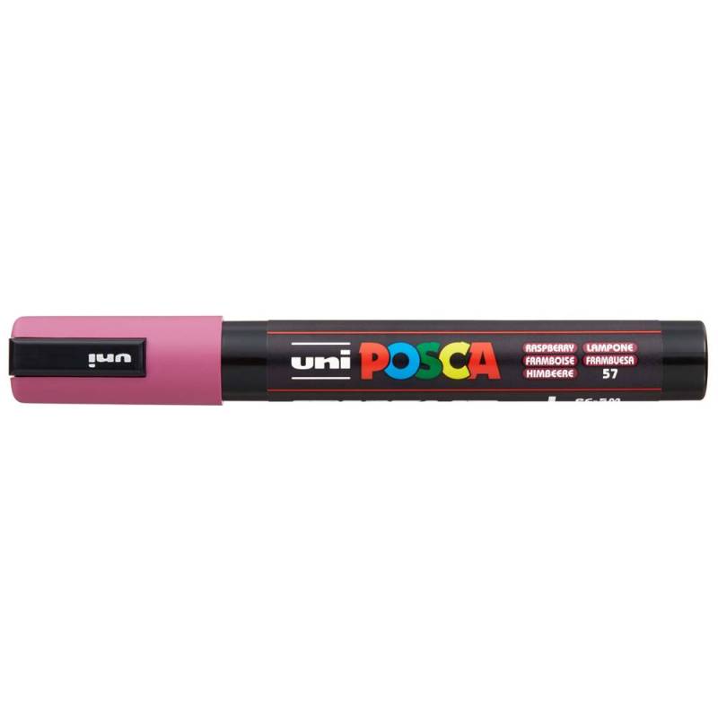 El rotulador Uni Posca PC-5M en color frambuesa es un marcador de pintura a base de agua, no tóxico y no permanente, diseñado para ofrecer una alta cobertura y opacidad sobre una amplia variedad de superficies. Su punta de poliéster en forma de bala, con un grosor que varía entre 1,8 y 2,5 mm, permite realizar trazos de grosor medio, ideales tanto para detalles como para rellenos en trabajos artísticos y decorativos.