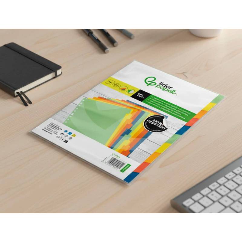 SEPARADOR MARCA LIDERPAPEL POLIPROPILENO JUEGO DE 10 SEPARADORES A4 MULTITALADRO 500 MICRAS