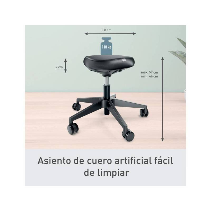 TABURETE MARCA LEITZ ERGO CON ASIENTO TRIANGULAR 5 RUEDAS GIRATORIAS REGULABLE EN ALTURA HASTA 59 CM NEGRO