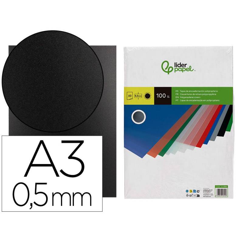 Tapa de Encuadernacion Polipropileno Liderpapel Din A3 Negro Opaco 0,5 mm pack 100 uds