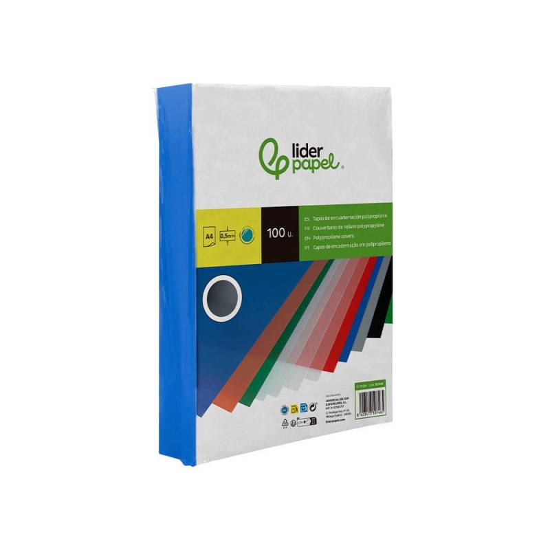 Tapa de Encuadernacion Polipropileno Liderpapel Din A4 azul Opaco 0,5 mm pack 100 uds